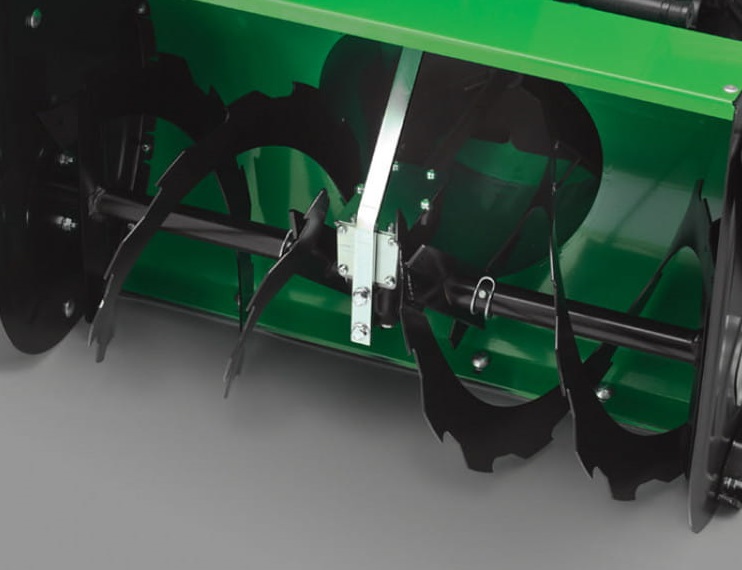 - Снегоуборочная машина имеет прочный металлический корпус и конструкцию, что делает ее более долговечной. Боковые панели закреплены с помощью заклепок, а нижняя часть панелей оснащена двусторонними башмаками. Вместе они усиливают корпус, обеспечивают плавное движение машины и служат защитой, продлевая срок службы.