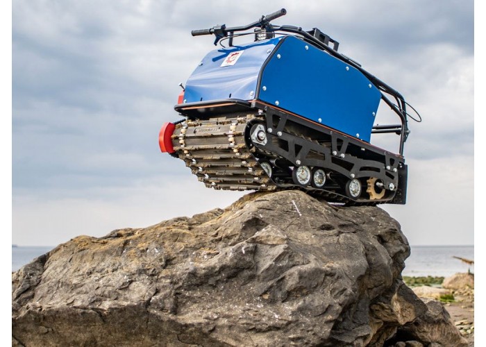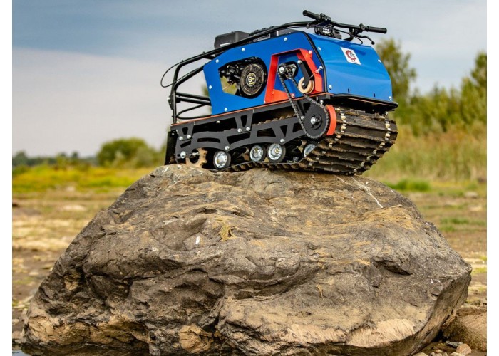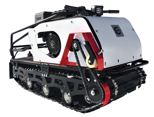 Имеется гусеничный движитель на балансирах катков с резиновым ободом и обслуживаемым полузакрытым подшипником. Также установлен передний балансир катков 4-х пружинный, средний и задний 2-х пружинный. На буксировщике установлена мощная светодиодная фара (12 SMD 36W) 1320 Lm. Роликовый натяжитель цепи упрощает натяжку цепи без снятия облицовки.