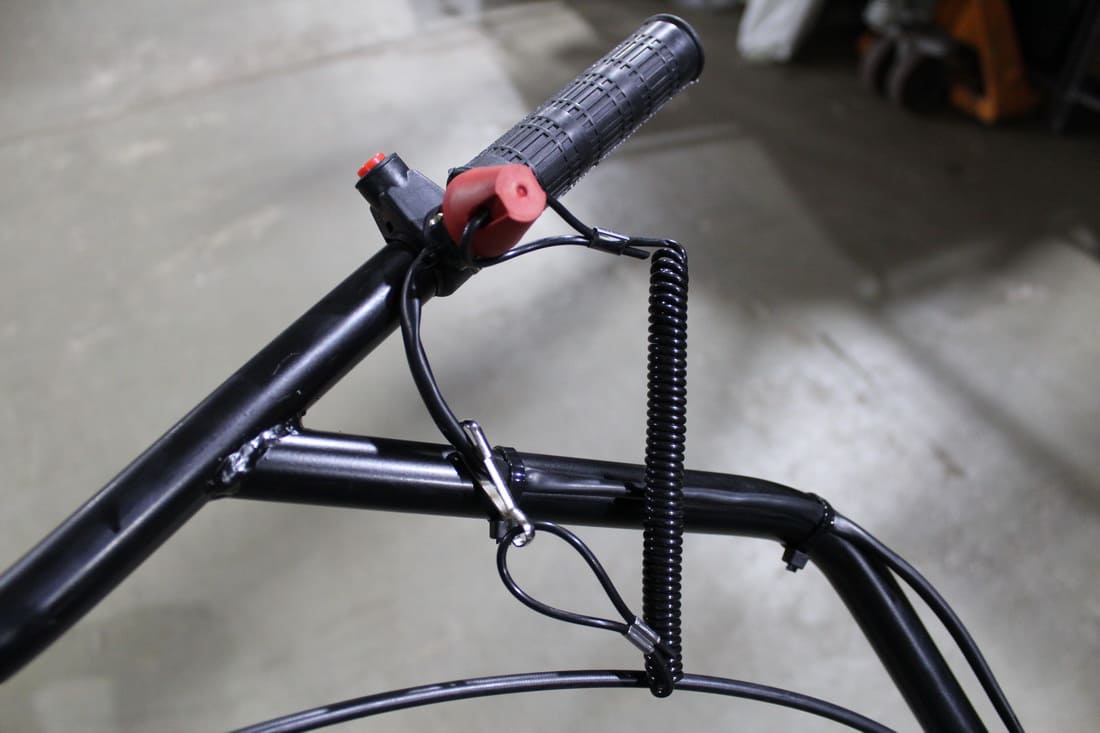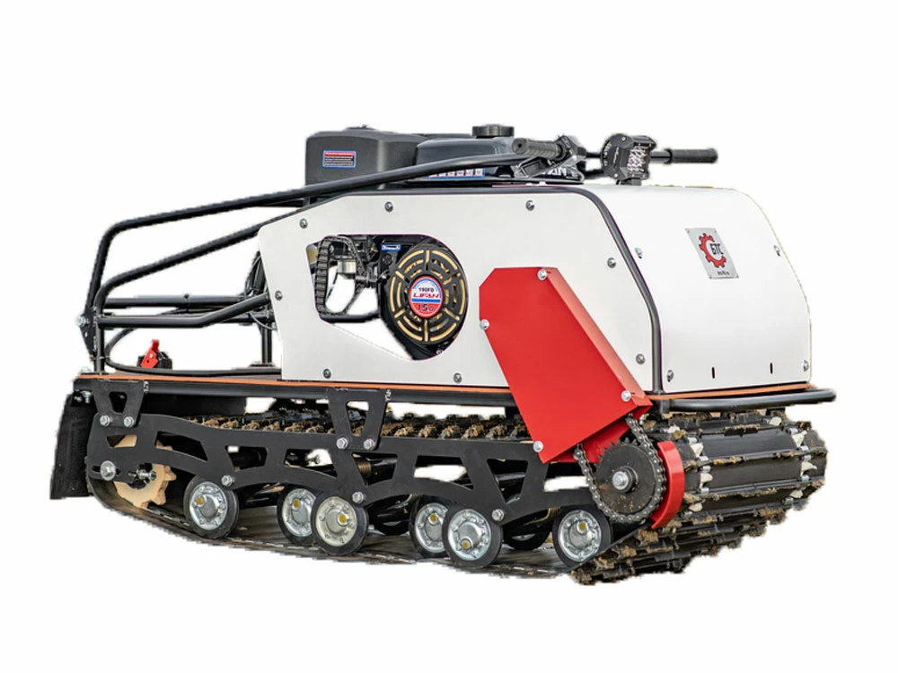 Рама максимально открытая, что улучшает выброс снега. Установлена защита нижней звезды. Двигатель и трансмиссия интегрированы на одной подмоторной плите, что позволяет точно выставлять шкивы относительно друг друга, вследствие чего устраняется перекос ремня вариатора и увеличивается его срок службы. Прочная стальная рама, каркас безопасности и металлический капот надежно защищают силовую установку мотобуксировщика.