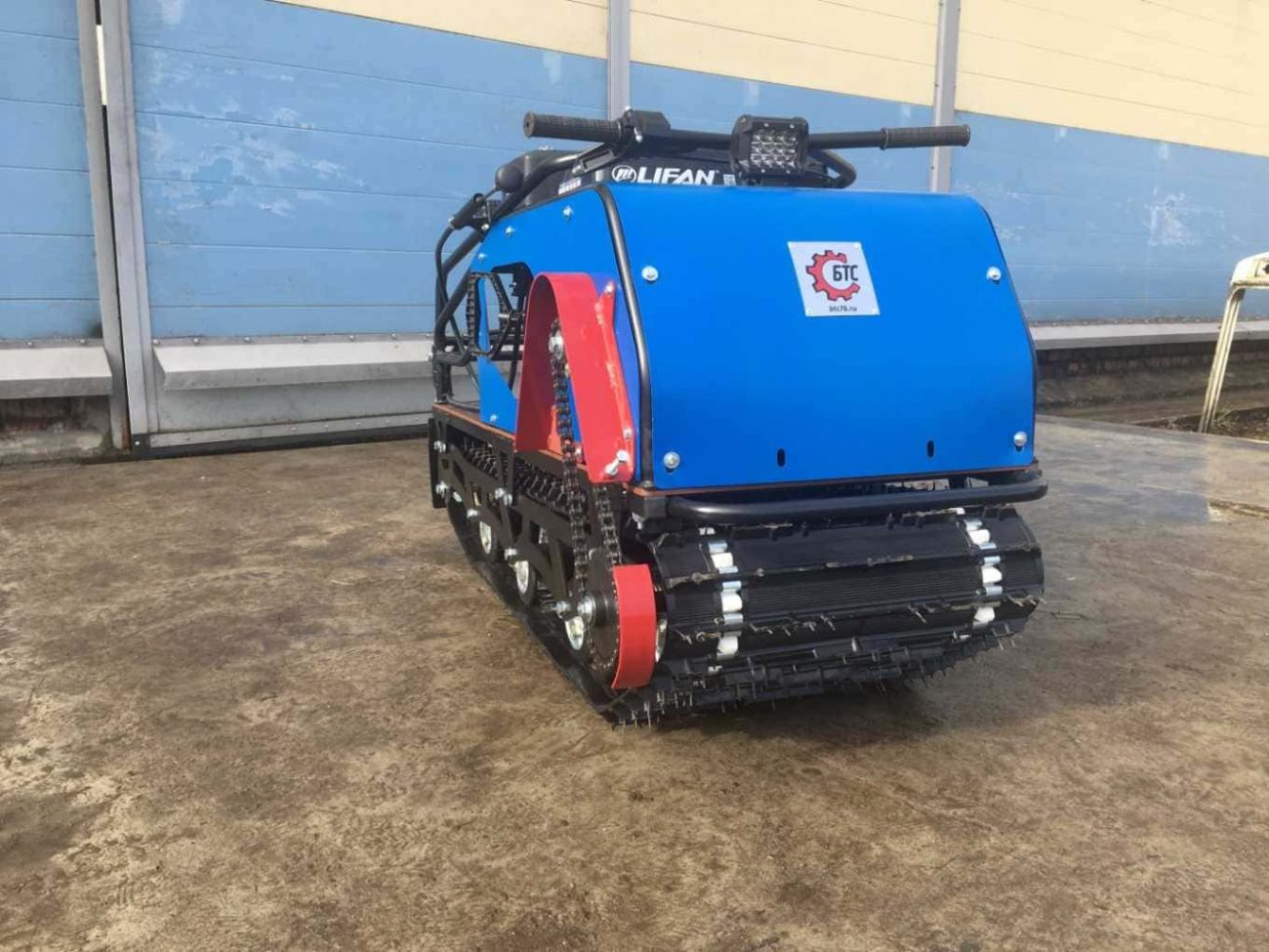 Мотобуксировщик БТС оснащен 4-х тактным двигателем мощностью 15 л. с., что позволяет достигать скорости до 45 км/ч. Это позволяет быстро перевозить общий груз до 350 кг в санях и на платформе мотособаки. Объем двигателя составляет 420 кубов.
