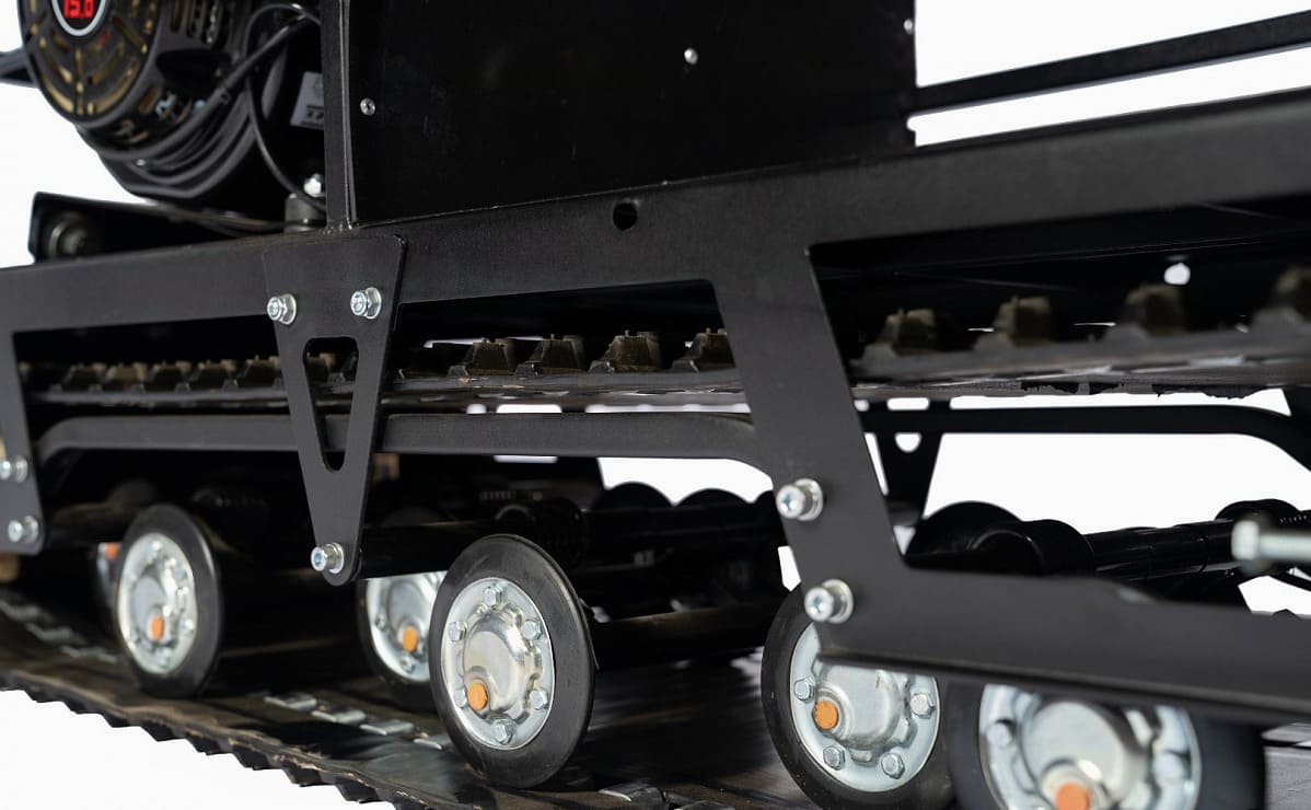 - Унифицированная взаимозаменяемая подвеска: катки, склизы либо колеса (катковую подвеску на унифицированной раме при желании можно заменить на катково-склизовую либо пневмо подвеску без каких-либо переделок рамы).