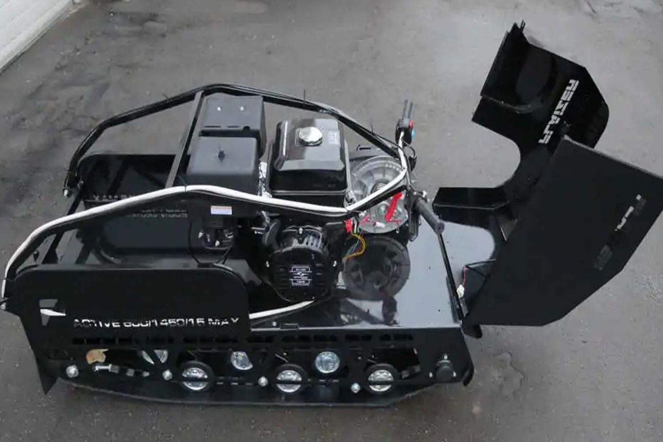 Универсальная катковая подвеска, с регулировкой угла атаки и возможностью установки склиз, позволяет эксплуатировать мотобуксировщик по любым поверхностям: снег, лед, болото, трава и т.д.