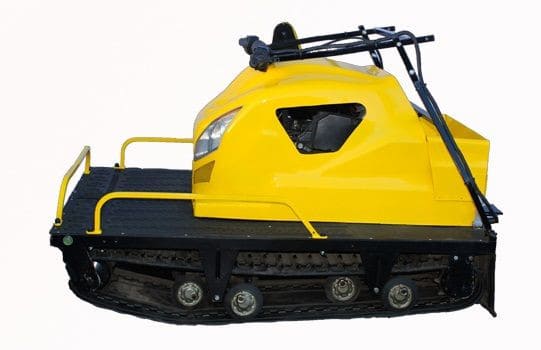 Мотособака весит 110 кг, а размер ее составляет 270 см в длину, 83 см в ширину и 75 см в высоту. Благодаря своей легкости и компактности, мотобуксировщик способен маневрировать и проходить по рыхлой и мягкой почве. К тому же мотобукс оснащен катковой подвеской, которая сглаживает ход, обеспечивает устойчивость на неровной поверхности, смягчает удары и вибрации от дороги.