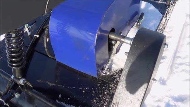 Мотобукс весит 75 кг, а размеры его составляют 110 см в длину, 49 см в ширину и 62 см в высоту. Модель оснащена гусеницей шириной 500 мм. Гусеница в сочетании с катковой подвеской способна проходить спокойно по льду и даже по территории без снега.