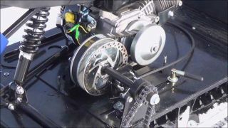 Мотособака оснащена 4-х тактным двигателем мощностью 8 л. с., достигающий максимальную скорость до 25 км/ч. Это позволяет быстро перевозить общий груз до 150 кг в санях. Объем двигателя составляет 230 кубов.