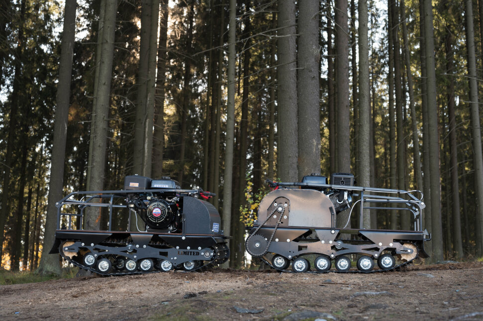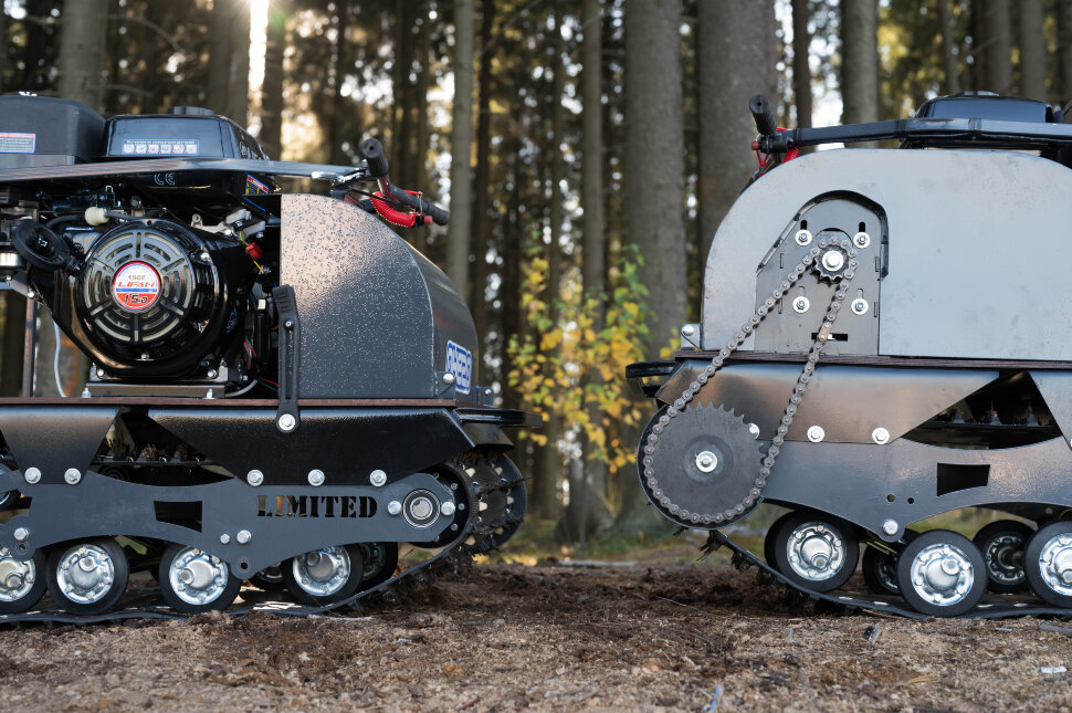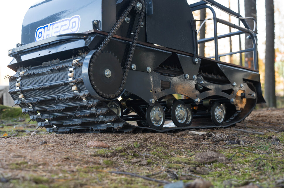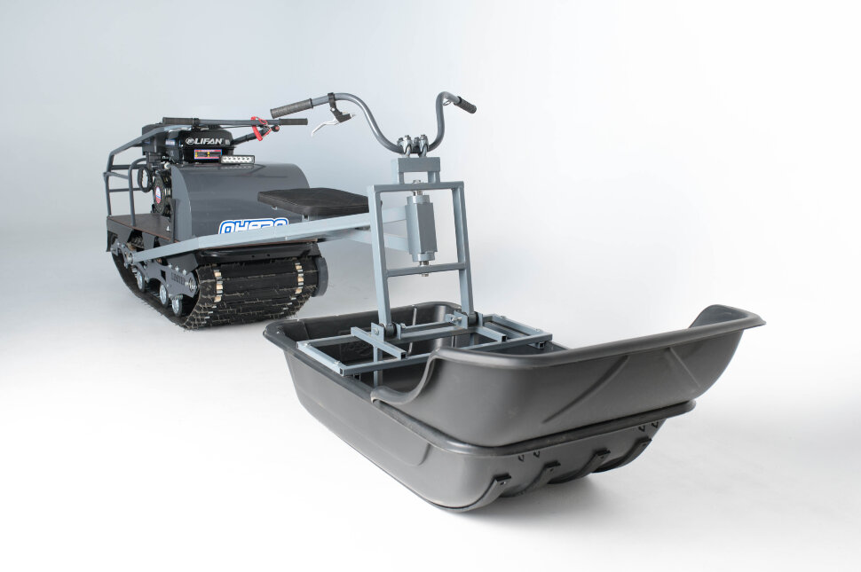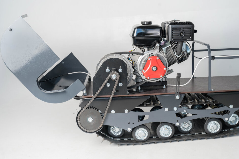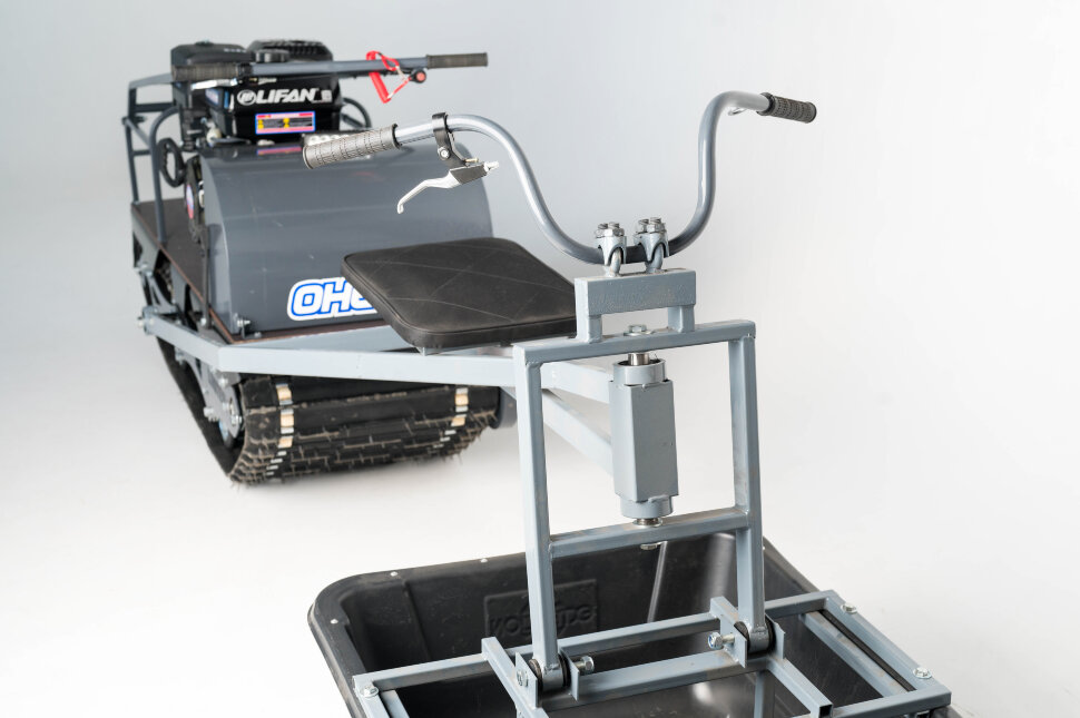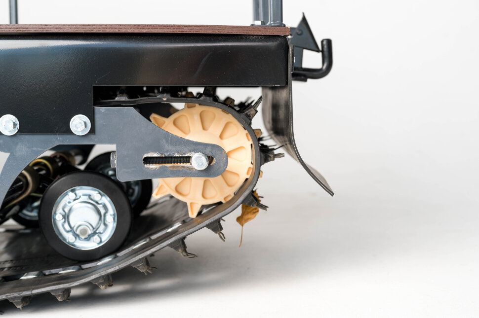 Катковая подвеска упрощена и не дает гусенице забиваться снегом. Также на данном мотобуксировщике установлены обрезиненные катки с сальниками и ведомая звезда, которая самоочищается от снега и льда. На мотобуксировщике также установлена настраиваемая рукоятка, регулируемая по высоте в зависимости от роста водителя.