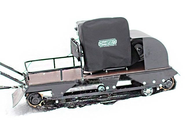 Мотобукс весит 100 кг, а размеры машины составляют 120 см в длину, 55 см в ширину и 72 см в высоту. Модель оснащена гусеницей с отличным сцеплением с поверхностью льда и снега шириной 500 мм. Гусеница в сочетании с катковой подвеской способна проходить спокойно по льду и даже по территории без снега.