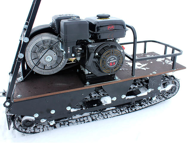 Катковая подвеска упрощена и не дает гусенице забиваться снегом. Также на данном мотобуксировщике установлены обрезиненные катки с сальниками и ведомая звезда, которая самоочищается от снега и льда. На мотобуксировщике также установлена настраиваемая рукоятка, регулируемая по высоте в зависимости от роста водителя.