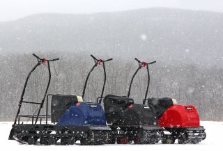Этот мотобукс оснащен 4-х тактным двигателем мощностью 13 л. с., что позволяет достигать скорости до 45 км/ч. Это позволяет быстро перевозить груз весом до 40 кг, а также дополнительно до 200 кг в санях. Объем двигателя составляет 390 кубов, а топливный бак имеет объем 5,5 литров.