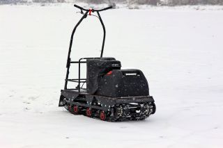 Этот мотобукс оснащен 4-х тактным двигателем мощностью 13 л. с., что позволяет достигать скорости до 45 км/ч. Это позволяет быстро перевозить груз весом до 40 кг, а также дополнительно до 200 кг в санях. Объем двигателя составляет 390 кубов, а топливный бак имеет объем 5,5 литров.