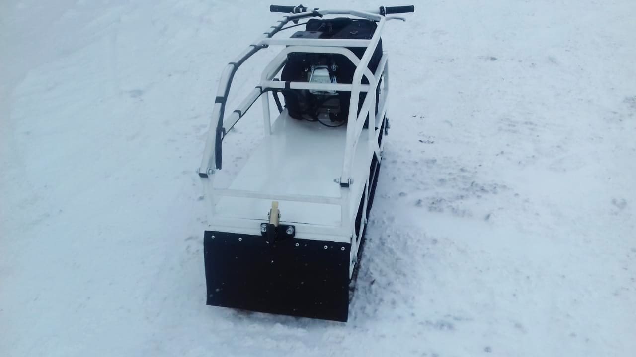 Этот мотобукс оснащен 4-х тактным двигателем мощностью 8 л. с., что позволяет достигать скорости до 20 км/ч. Это позволяет быстро перевозить груз весом до 250 кг. Объем двигателя составляет 270 кубов. Кроме того, мотовездеход оснащен топливным баком на 3,6 литров. Расходуя до 2 литров бензина в час, мотобуксировщик дает возможность беспрерывной работы до 2х часов.