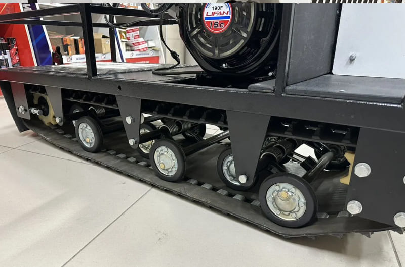 2. Катковая подвеска: Система с катками и валами, заимствованная от модели Буран, обеспечивает хорошую проходимость и устойчивость на рыхлом снегу.
