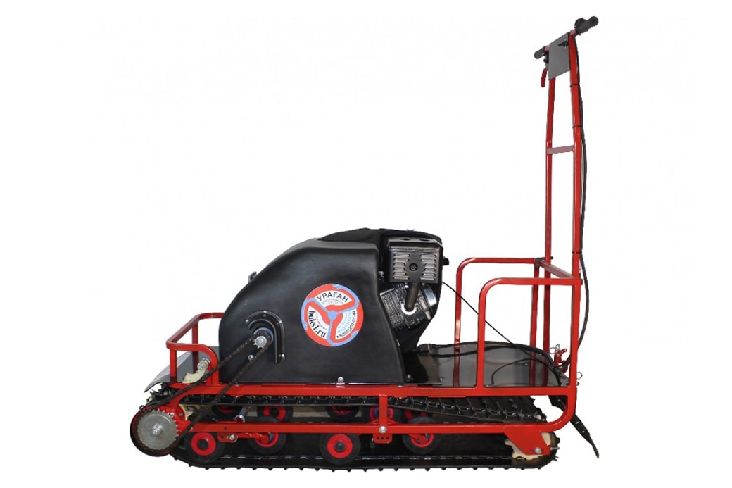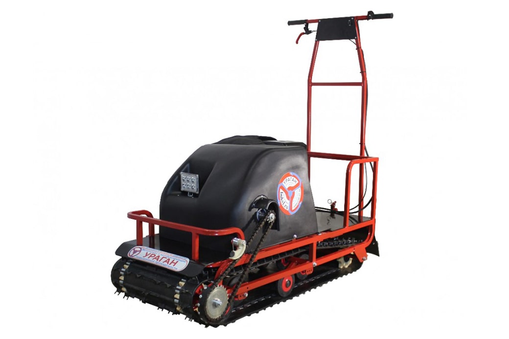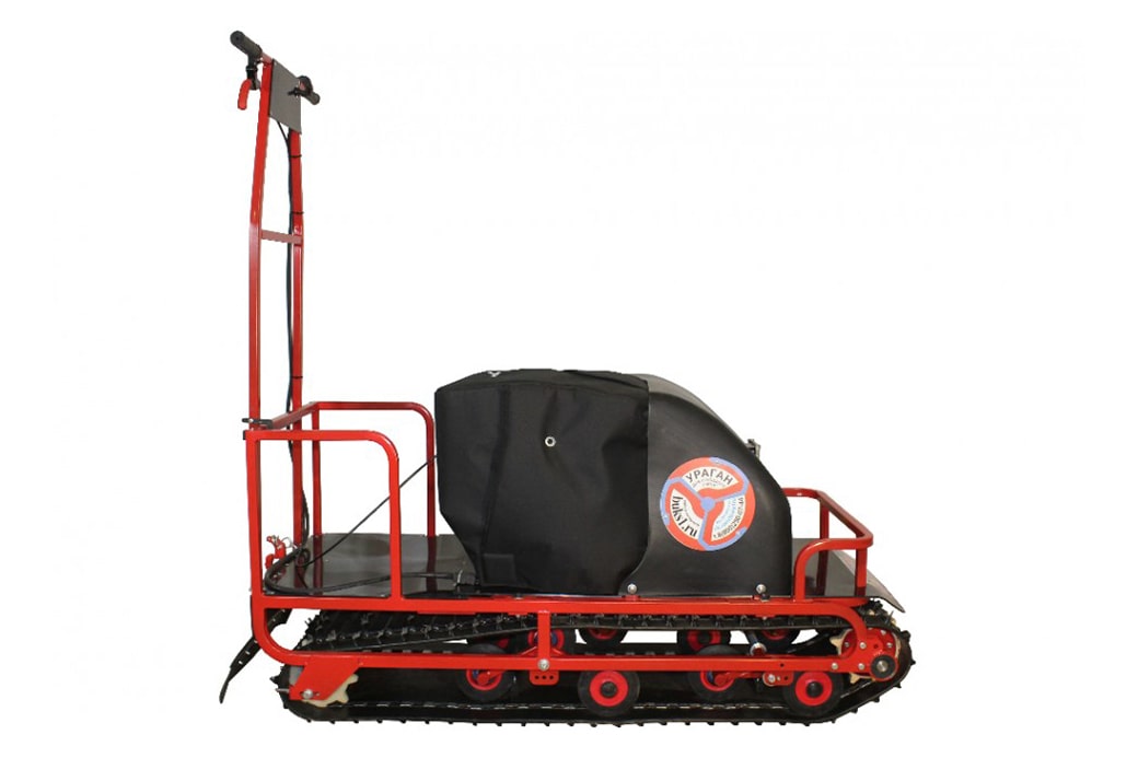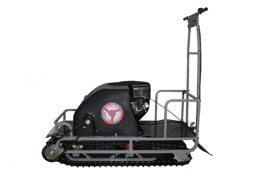 В конструкции мотовездехода используется цельная резиновая гусеница шириной 500 мм. Увеличенная площадь опоры гусеницы улучшает тяговые характеристики, проходимость и устойчивость буксировщика. Мотобукс оснащен специальной системой очистки гусеницы, благодаря которой не скапливается снег внутри и не увеличивает общего груза на транспорте.