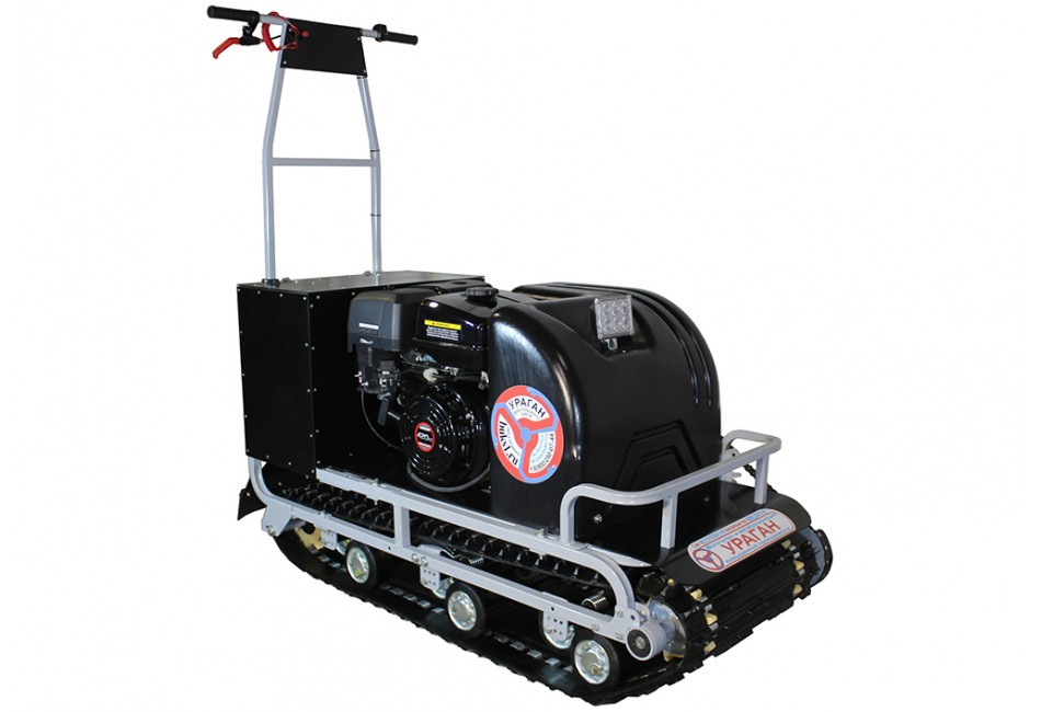 В конструкции мотовездехода используется цельная резиновая гусеница шириной 500 мм. Увеличенная площадь опоры гусеницы улучшает тяговые характеристики, проходимость и устойчивость буксировщика. Мотобукс оснащен специальной системой очистки гусеницы, благодаря которой не скапливается снег внутри и не увеличивает общего груза на транспорте.