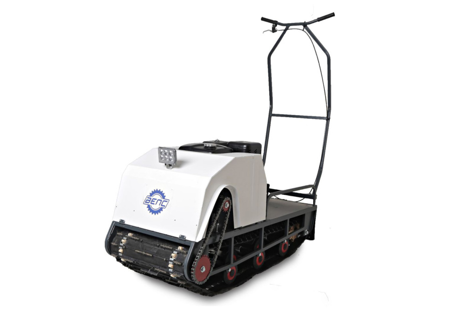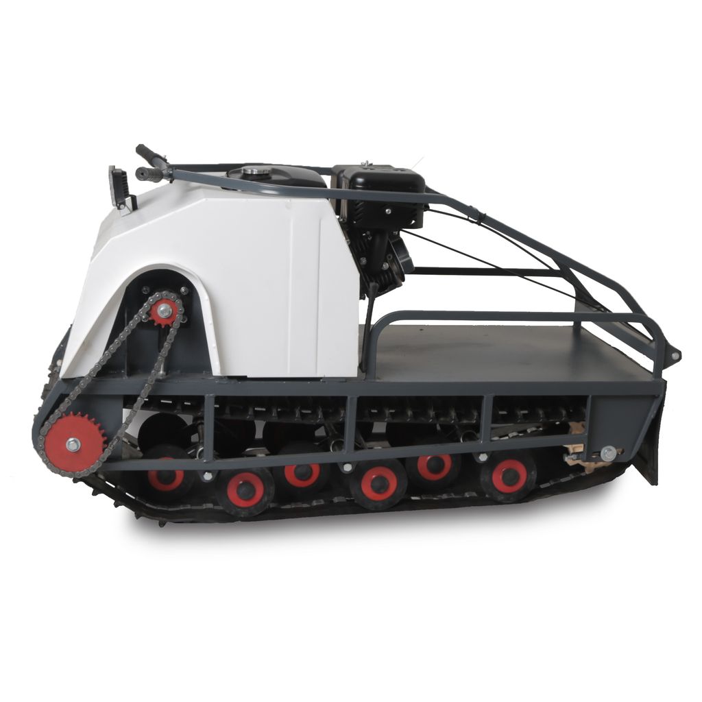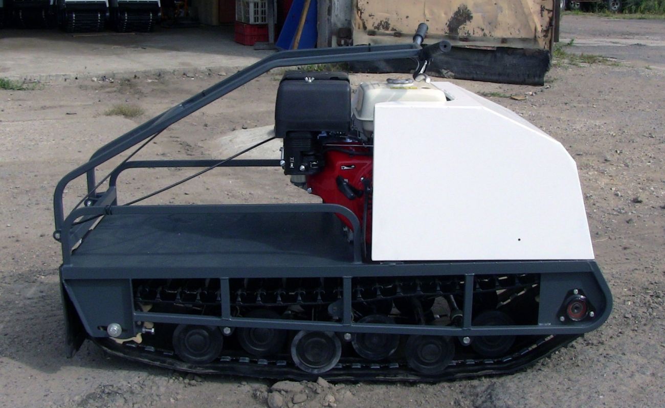 Модель оснащена гусеницей шириной 500 мм. Гусеница в сочетании с катковой подвеской способна проходить спокойно по льду и даже по территории без снега.