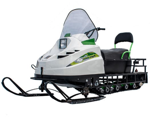 Снегокат оснащен защитой двигателя, улучшенной задней подвеской с амортизатором. Гусеница имеет длину 2828 мм и ширину 500 мм. Снегоход также имеет простую и надежную переднюю 2-х лыжную рессорную подвеску и стальные лыжи, что обеспечивает отличную управляемость и маневренность.