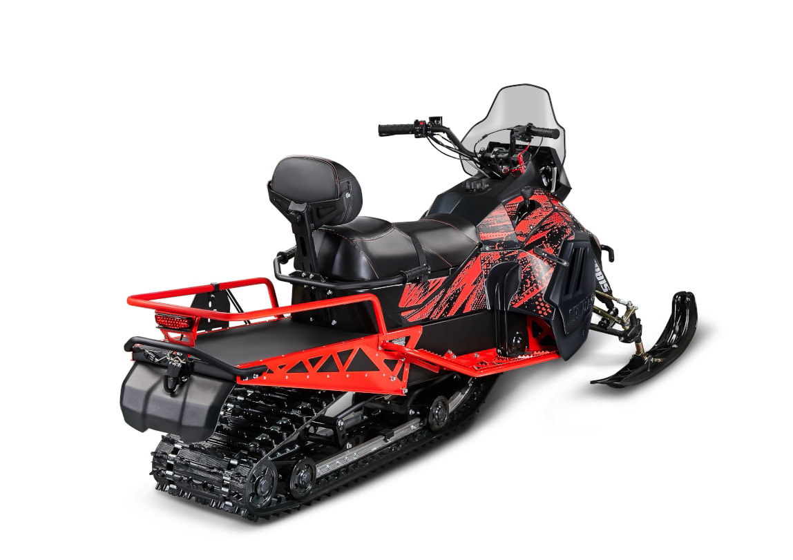 Снегоход SF200SL имеет современный дизайн и компоновку. Элементы конструкции спроектированы таким образом, что бы обеспечить комфортное передвижение по любому снежному покрытию. Подогрев ручек и курка газа, USB-розетка, панель приборов со всей необходимой информацией, электрозапуск двигателя и ручной запуск. Широкие и длинные подножки, закапотированный двигатель, двухместное сиденье, спинка для пассажира, позволяют удобно расположиться водителю и пассажиру на снегоходе. Проверенный годами эксплуатации, двигатель 180 куб.см, через клиноременный вариатор разгоняет снегоход свыше 50 км в час. Независимая передняя подвеска позволяет легко маневрировать и держать уверенно курс. В наличие задний ход.На снегоходе установленная удлиненная гусеница 3434 мм, специально созданная российским заводом «Композит». Гусеничный блок с обрезиненными катками и алюминиевыми закаленными склизами. Задняя подвеска с регулируемым ходом и жесткостью. Рама и тоннель гусеничного блока изготовлен из стали 1.5 мм с усиливающими накладками в местах наибольших нагрузок