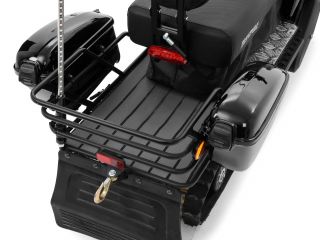 Два багажника и дополнительные крепления делают снегоход надёжным инструментом для транспортировки грузов. Максимальная грузоподъёмность Sharmax SN-210 — 150 кг, что весьма достойно для его габаритов.