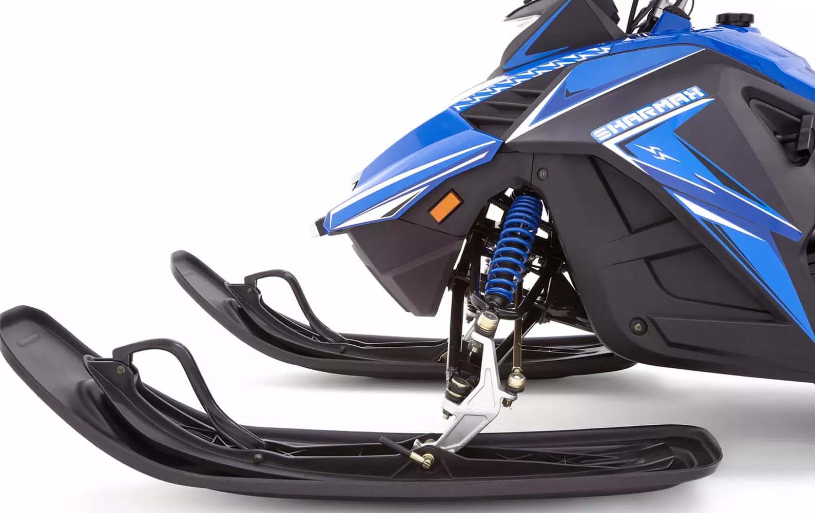 Передняя подвеска – независимая с двойными А-образными рычагами, задняя – склизовая, с маятниками и газомасляными амортизаторами. Гидравлическая тормозная система. Подогрев ручек и курка, спинка для пассажира, яркая фара, чека безопасности, интуитивная приборная панель и аэродинамическое ветровое стекло — всё, что нужно для комфорта райдера собрано в снегоходах Sharmax