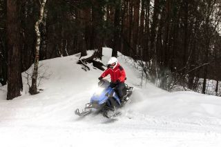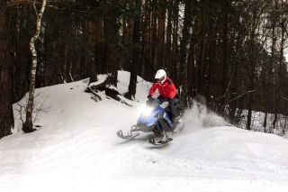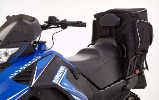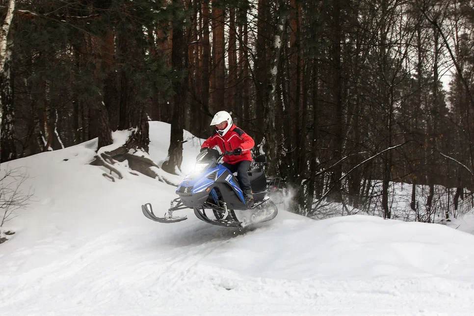 Длинная и в меру широкая резинотканевая гусеница с повышенным грунтозацепом создает большое пятно соприкосновения с поверхностью и в разы увеличивает проходимость снегохода. Совокупность этих факторов позволяет без риска перевозить двоих пассажиров и груз до 170 кг. под наклоном до 35 градусов. Сзади есть мощный фаркоп с возможность транспортировать до 300 килограммов груза.