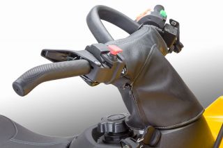и обладающее великолепнои пластичностью, отлично защищает пилота от снега и ветра. Удобное сиденье обеспечивает максимальныи комфорт во время поездки. Кнопки управления, выполненные в современном стиле, дают возможность переключения даже в объемных перчатках. Загнутые концы руля и противоскользящие ручки обеспечивают хорошии захват и препятствуют соскальзыванию даже при вождении снегохода в тяжелых условиях большого крена.