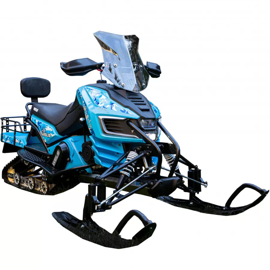 Снегоход WELS 200RS New V2 - мощный и надежный транспорт для передвижения по снежным и бездорожным местностям. Он обладает высокой проходимостью и комфортной посадкой, что делает его идеальным выбором для зимних приключений. Снегокат отлично подойдет как опытным любителям зимнего отдыха, которые уже уверенно сидят в седле снегохода, так и начинающим райдерам.