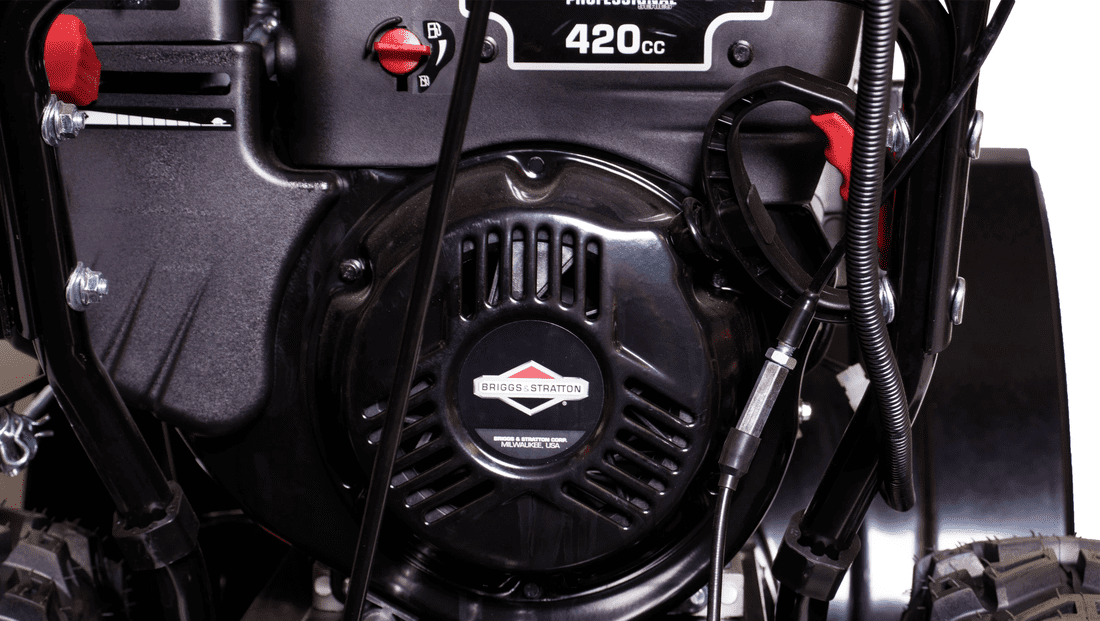 - Ручной стартер. Используется для запуска двигателя и находится в удобном и доступном месте на задней части снегоуборщика в виде рычага.