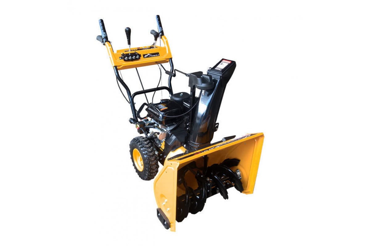 - Мощный самоходный гусеничный снегоуборщик с электростартером и фарой.