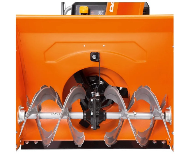 - Стальной шнек. Снегоуборочная машина оснащена специальным шнеком с зубчиками, который позволяет справиться даже с залежавшимся снегом на большой и маленькой территории. Обладает многоступенчатой системой очистки.