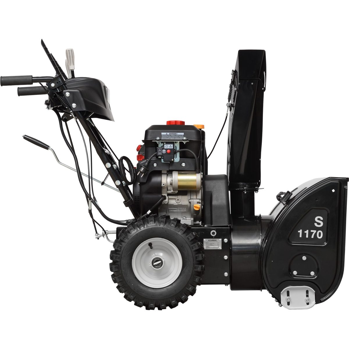 Снегоуборочная машина Хендай оснащена бензиновым двигателем с воздушным охлаждением мощностью 11 л.с. и объемом 358 куб. см. Двигатели ICW400 в моделях Hyundai обеспечивают запуск при температуре до -30 °С, имеют ресурс более 20 моточасов, отличаются низким уровнем шума и расходом топлива АИ-92.