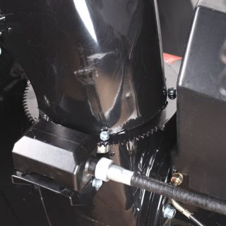 Электрическое устройство пуска и ручной стартёр осуществляет легкий запуск машины в экстремальных условиях. Наличие галогеновой лампы позволяет продолжить работу при плохой видимости. Зубчатый стальной шнек, состоящий из независимых четырех спиралей эффективно измельчает слежавшийся снег и наледь и не прекращает работу при поломке одной из спиралей. Для удобства работы предусмотрено регулирование дальности и угла выброса снега.