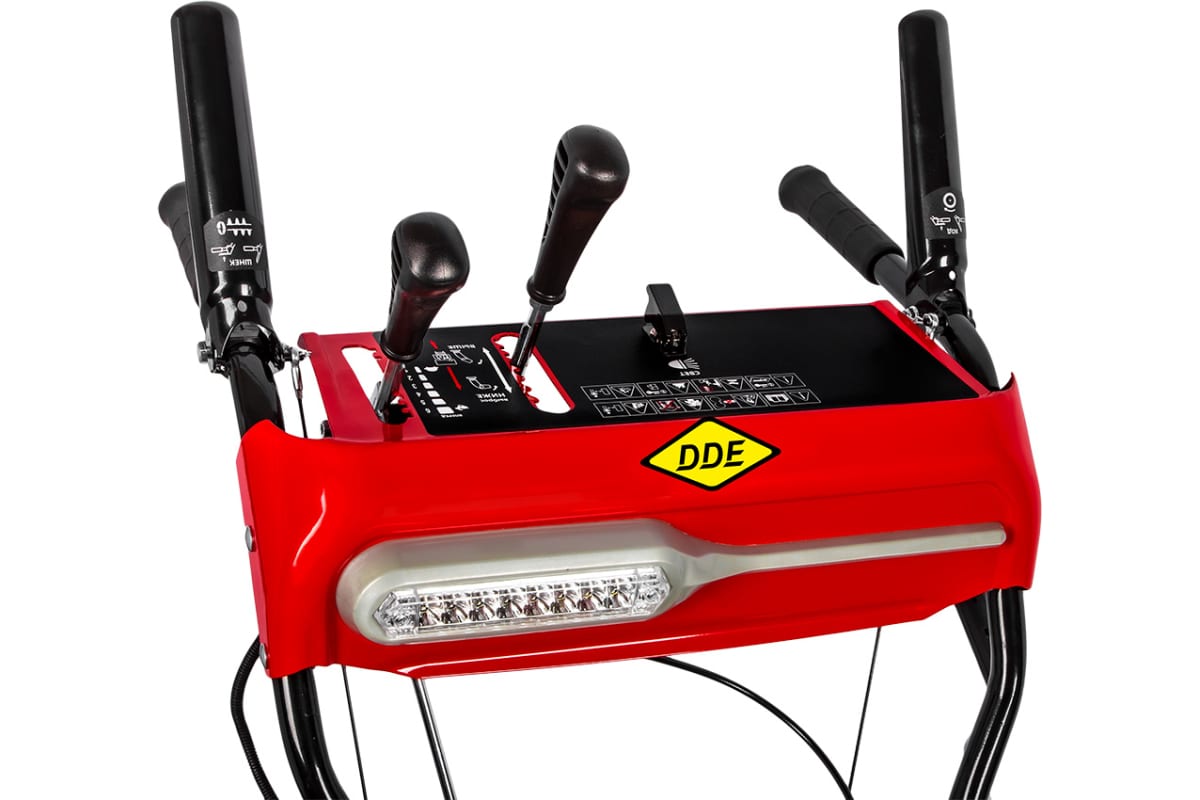 Самоходный снегоуборщик DDE ST7071E предназначен для очистки от снега придомовой территории, садовых и подъездных дорожек, парковочных мест и других небольших территорий. Имеет литые резиновые колеса, фару и электростартер. Кроме того, снегоуборщик отличается наличием 8 передач — 6 вперед и 2 назад, поэтому вы запросто сможете подобрать для себя оптимальный режим работы.