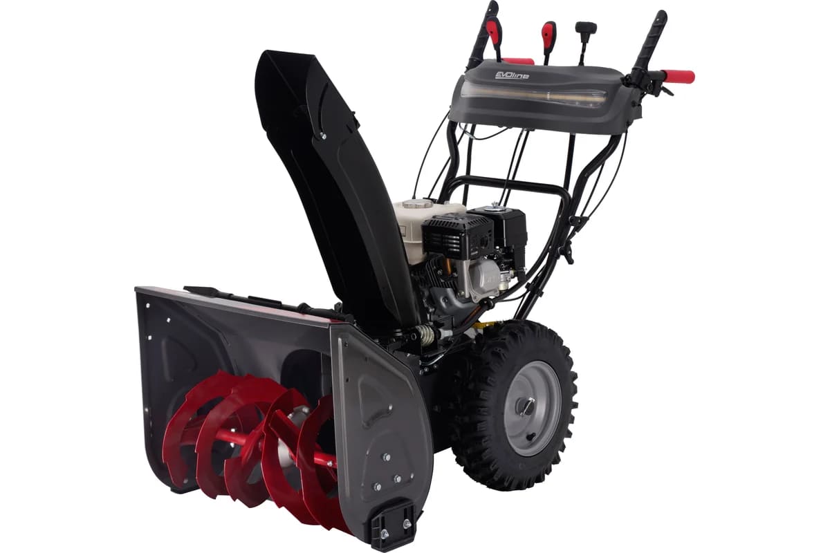 Самоходный бензиновый снегоуборщик EVOline SBG 610 HE серии PREMIUM создан для уборки снега на дачном участке и окружающей территории. Пневматические колёса с глубоким протектором обеспечивают отличное сцепление. Двухступенчатая система очистки и стальной шнек способны грести талый, залежалый снег и перемалывать наст (оледенелую корку на поверхности снега).