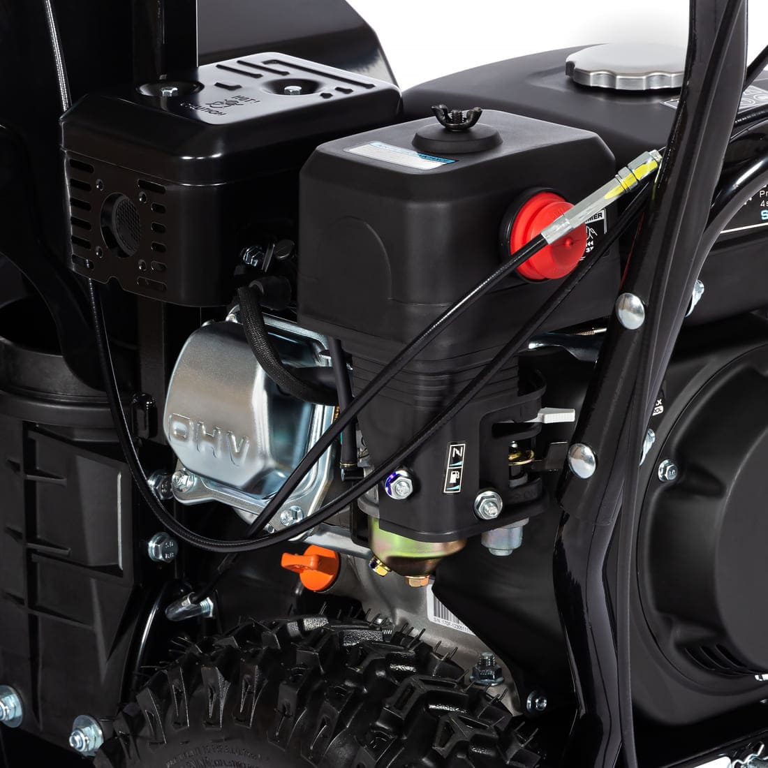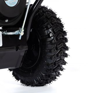 Зубчатая насечка шнека, усиленного ребрами жёсткости, успешно раскалывает лёд. Утолщенная крыльчатка выброса лопаточного типа позволяет отбрасывать снег до 12 метров. Самоходное шасси на колёсной и гусеничной базе снижает нагрузку на оператора и позволяет преодолевать небольшие уклоны.