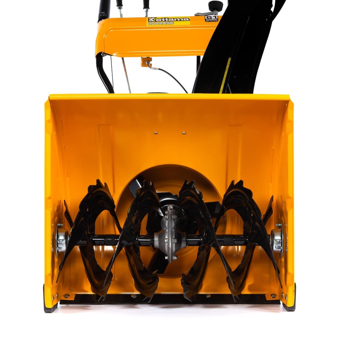 Эта модель способна справляться со снегом плотностью до 400 кг/м3 с производительностью до 4 т/ч. Этому способствует достаточно высокая мощность двигателя в 7 л. с. при небольшой ширине уборки в 610 мм. Kettama 80B Basic объединяет удобство управления и достаточно высокую рабочую ресурсность. Kettama 60B имеет возможность управления одной рукой. Это становится возможным благодаря одновременной фиксации рычагов движения колёс и шнека. Учитывая, что рычаг управления дефлектором выброса снега находится на панели оператора, уборка снега становится очень быстрой и удобной.