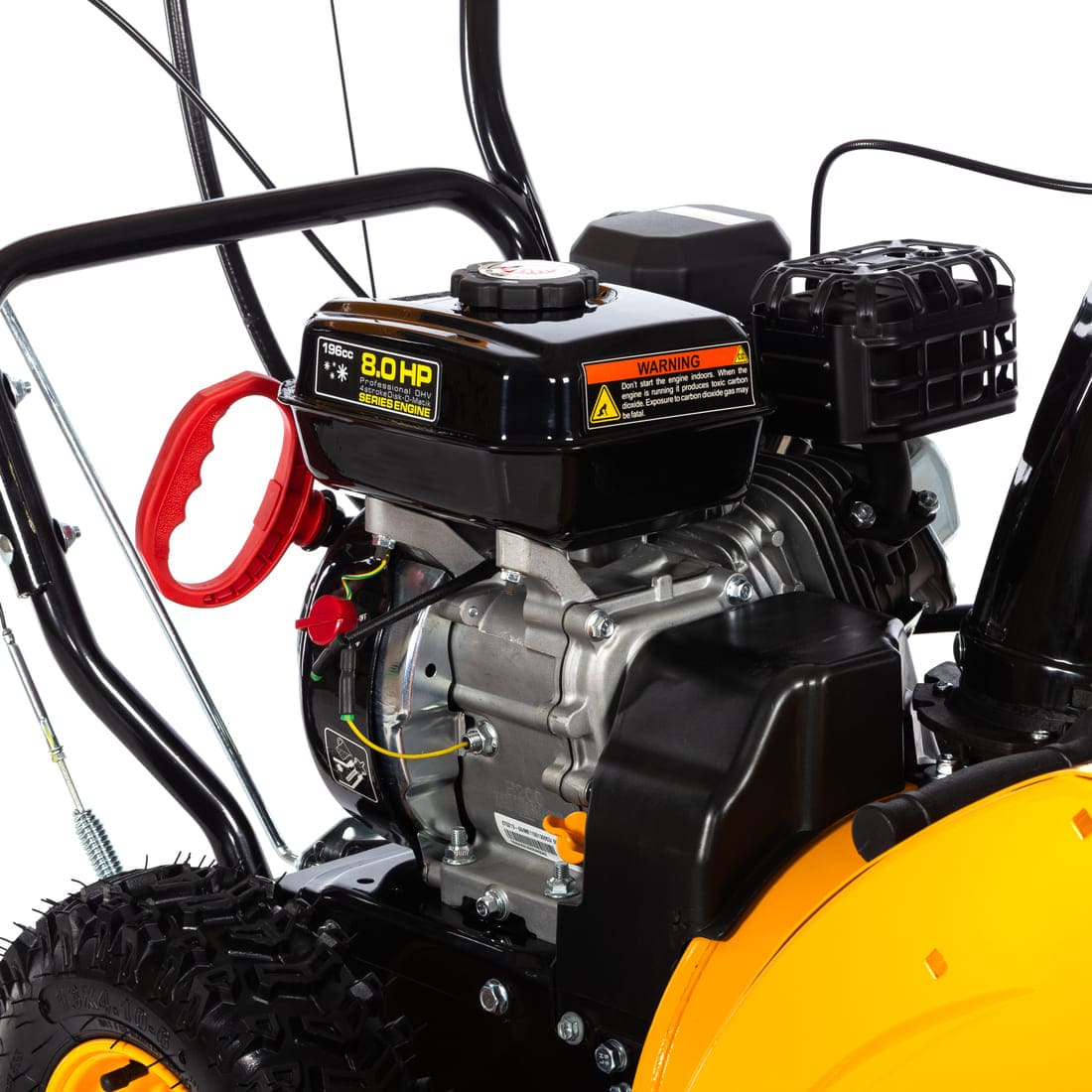 Дефлектор из усиленного металла даёт возможность менять направление выброса снега на 190 градусов при помощи рукоятки на корпусе машины, позволяя длительное время непрерывно заниматься уборкой практически всех типов снега. Стальной агрессивный шнек с добавлением хромомолибденового сплава позволяет эффективно справляться даже со слежавшимся снегом с элементами глетчерного льда.