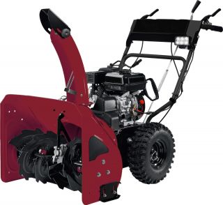 Устройство оснащено прочным и устойчивым к деформациям шнеком из стали. Заводится снегоуборщик вручную. Пара широких колес обеспечивает улучшенную проходимость, что особенно актуально при работе в условиях повышенной снежности. Специальные снегообрушители обваливают верхнюю часть сугроба в процессе уборки. Объемный топливный бак дает возможность не делать частых остановок, чтобы произвести дозаправку.